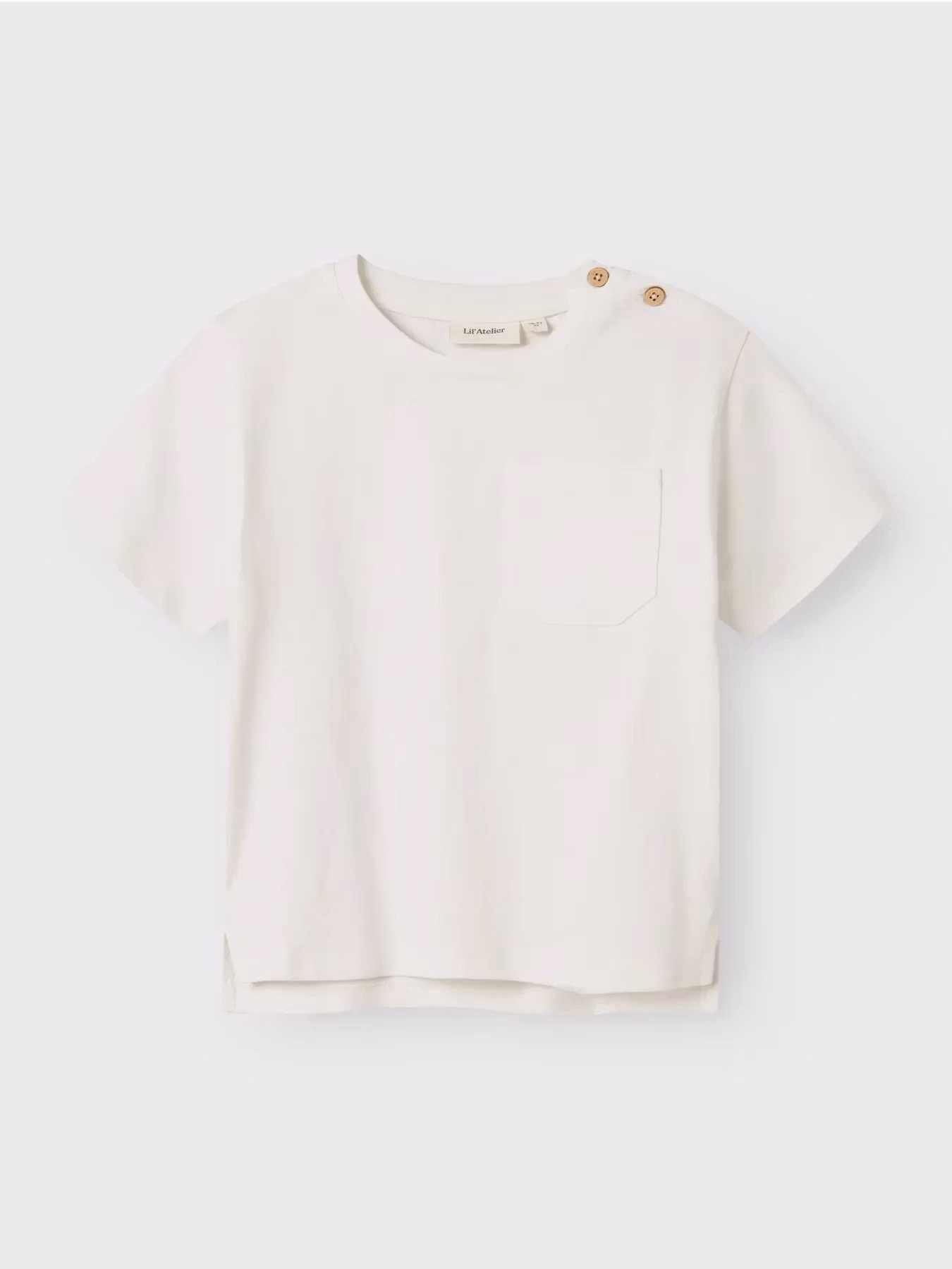 Fin vit t-shirt med en ficka och fina knappar, från Lil Atelier. Perfekt till vardags som fest!