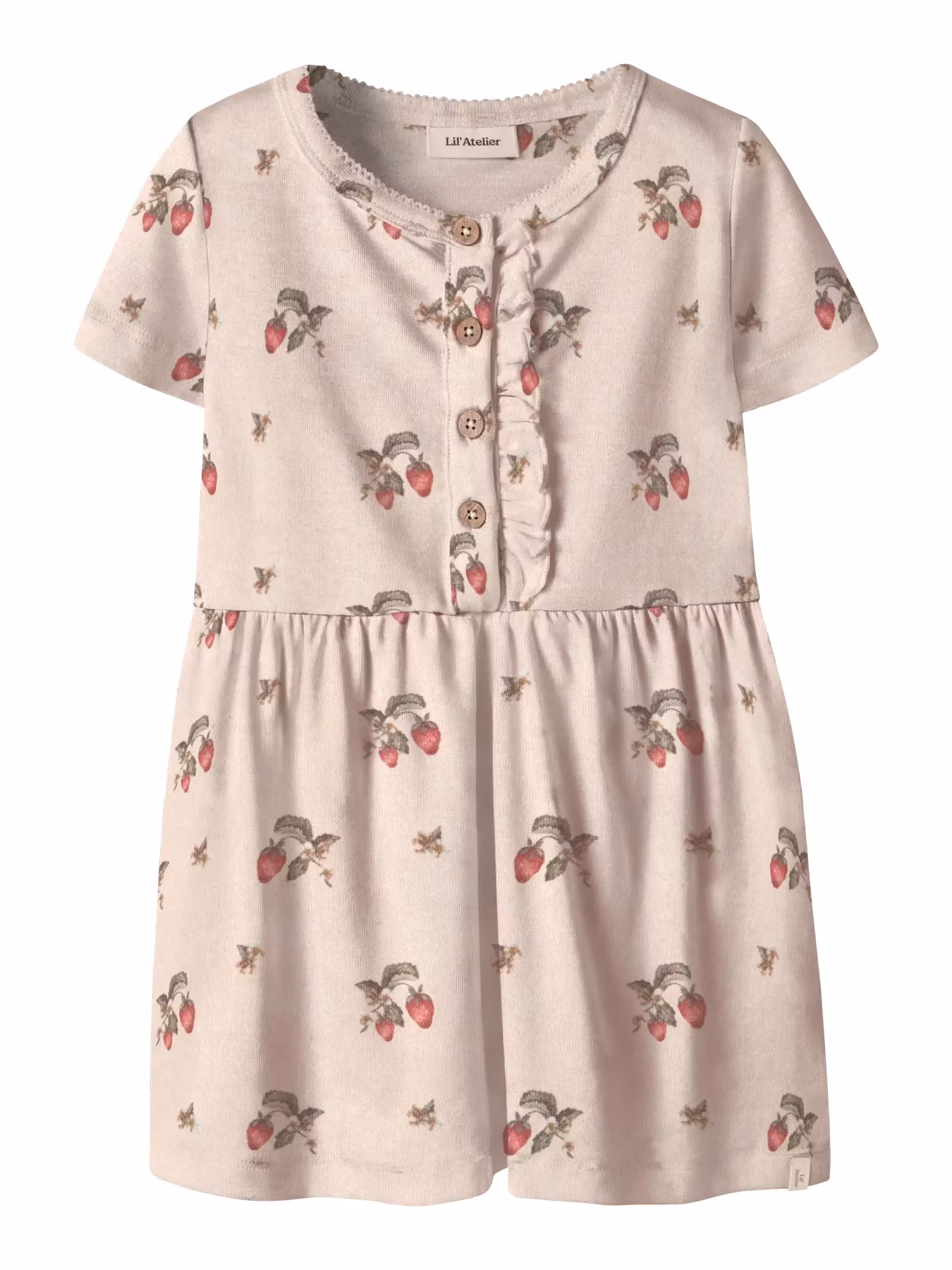 Söt rosa somrig klänning med jordgubbar på från Lil Atelier.